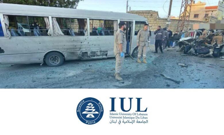 الذي ارتكبه العدوّ الإسرائيلي صباح اليوم، عبر استهداف سيارة صودف مرورها بمحاذاة حافلة نقل تقلّ طلابًا كانوا في طريقهم إلى الجامعة الإسلامية، في انتهاك خطير يعرّض حياة الطلّاب الأبرياء للخطر المباشر ويشكّل مساسًا فاضحًا بأمن لبنان وسيادته.