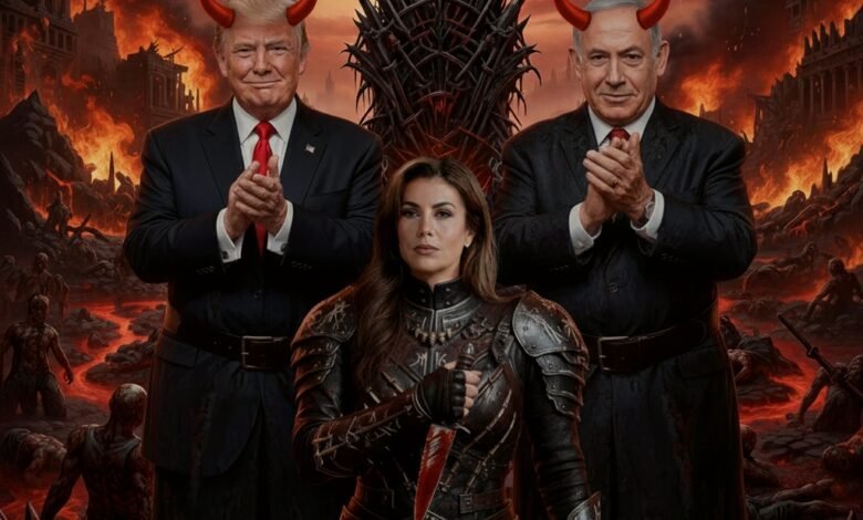 هي شعلةٌ من نار الشيطان الذي ربّاها، وباسمه وقراره كانت تخرج لتبرّر جرائم آلة الحرب الصهيونية التي تقتلنا بشكلٍ يومي. وعلى خطى إلاهها ترامب وسيدها نتنياهو تمضي غير آبهةٍ مُحرقةً كل ما حولها!